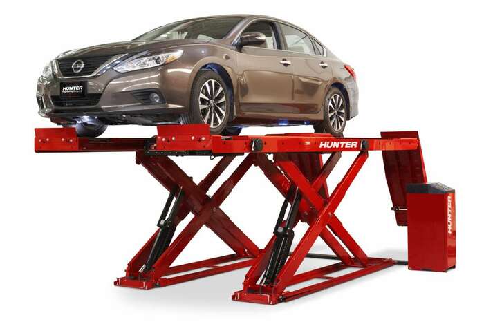 Hunter's automotive scissor lift family offers four capacities and several wheelbase lengths to meet virtually any need. Hunter vehicle scissor lift racks feature low drive on heights for all models, or even popular flush mount configurations. Add InflationStation™, PowerSlide®, and AlignLights options to really ramp up productivity.